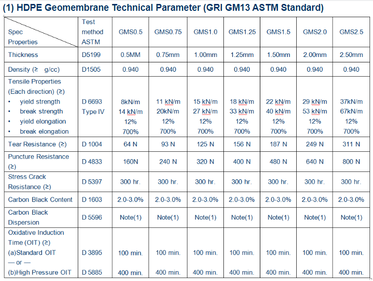 一般地,GRI GM13光面HDPE土工膜的常用規(guī)格: