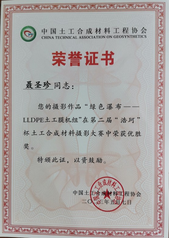 在第二屆“浩珂”杯土工合成材料攝影大賽中榮獲優(yōu)勝獎(jiǎng)。