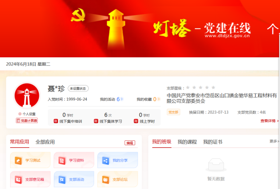 于1999年6月24日,光榮地加入了黨組織;